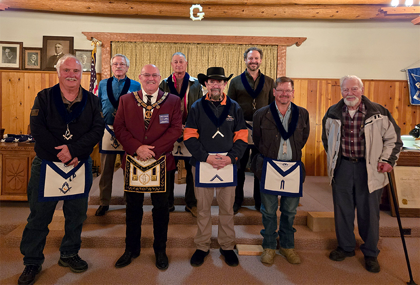 WB Ray Engstrom (Valley Lodge 69), WB Tom Swertfeger (Valley Lodge 69), RWB James Bungard (Junior Grand Warden-GLofNM),